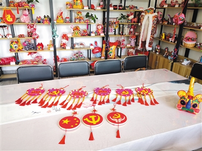 斑斓虎创意工坊里,一只只耳朵为寿桃状、鼻子为葫芦状的布老虎栩栩如生,憨态可掬。“为献礼党的生日,我特将布老虎重新改样,增加新元素,寓意祖国繁荣吉祥。”工坊创始人孙敬介绍说。工坊桌子上还摆放着9幅五星红旗、党徽等图样的十字绣作品,绣工精湛,美观大方,一针一线都饱含对党和祖国的热爱与祝福。