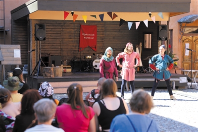 芬兰古城图尔库于7月1日至4日举行“中世纪市集”活动。人们身着中世纪风格服装售卖货品,表演短剧、马戏和歌舞。