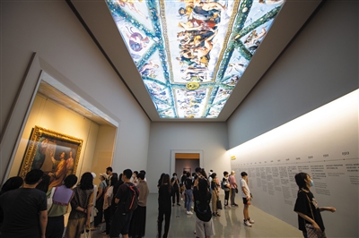 7月10日,参观者在北京嘉德艺术中心观看“遇见拉斐尔——从文艺复兴到新古典主义大师馆藏展”。