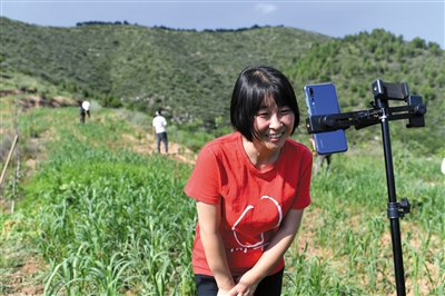 太行山深处,山西省黎城县岩井村的谷子地里,魏美玲带着手机稳定器、三脚架和手机,准备开始直播村民锄草、松土的过程。