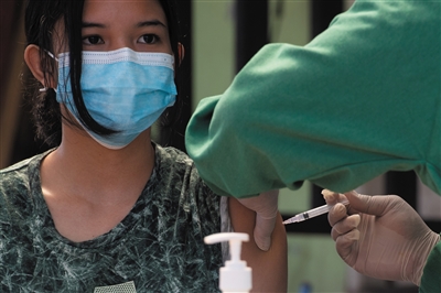 7月12日,医务人员在印度尼西亚雅加达一处人口密集区的移动疫苗接种点为居民接种新冠疫苗。