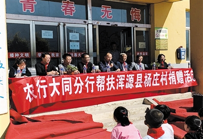 2020年教师节,农行大同市分行为杨庄学校赠送了图书、文体用品,为学生赠送了价值1万元的书包和文具。