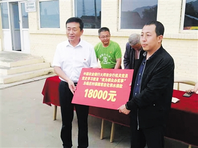 由于气候和地理位置等因素影响,杨庄村对灌溉的依赖性非常大,夏季用电、用水量增加,村内只能限时供水。2021年6月24日,农行大同市分行党委号召党员捐款,将18000元捐款送到杨庄村,为解决人畜用水难题提供了资金保障。