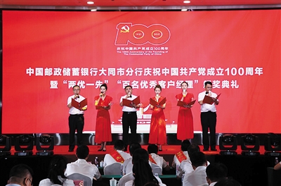 日前,邮储银行大同市分行召开庆祝中国共产党成立100周年暨“两优一先”“百名优秀客户经理”表彰大会,全行近100名党员领导干部参加。