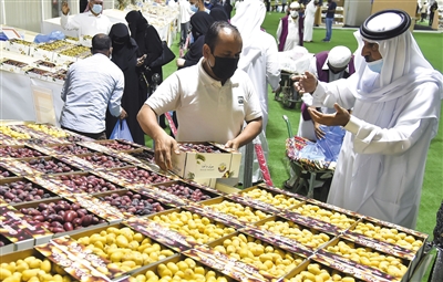 7月17日,人们在卡塔尔多哈瓦吉夫老市场举办的第六届椰枣节上选购椰枣。