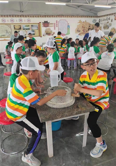 7月16日,浑源县研学基地会展中心礼堂,气氛热烈,童声嘹亮,10岁的留守儿童贾昕泉和小朋友们一起朗诵《党旗颂》,声音时而热情奔放,时而抒情悠扬,深切表达了对党和祖国的热爱之情。之后,贾昕泉又和小朋友们一起参观了黄芪加工过程,亲手制作、品尝了豆浆、豆腐……