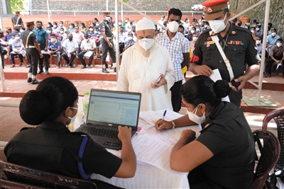 7月20日,在斯里兰卡科伦坡,人们在登记准备接种第一剂国药疫苗。