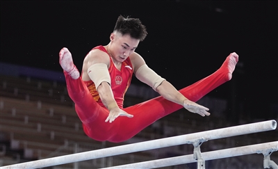 中国男子体操队赛台训练
