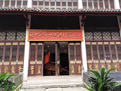 最后一进是新四军军部旧址陈列馆。“抗敌”主题雕塑映入眼帘,鲜艳的党旗下,一新四军战士左手持着步枪,右手直指前方,奔跑的身姿似在呐喊:冲啊、杀敌!
