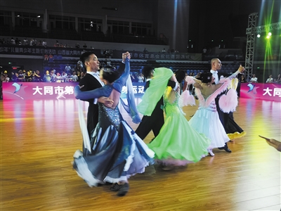 24日,2021年大同市第二届全民健身运动会古都大同体育舞蹈公开赛在市体育中心体育馆举行,32支代表队千余名选手踏歌起舞。