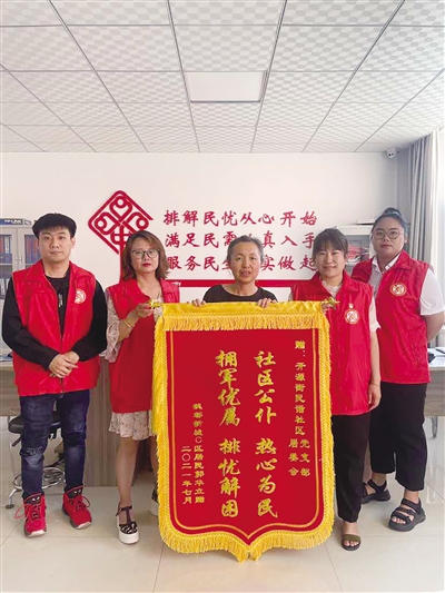 本报讯 (记者 孙露) 近日,平城区开源街道民谐社区退役军人郭华立的爱人肖花怀着激动的心情,将一面锦旗送到民谐社区,感谢社区多年来对他们一家的关怀。