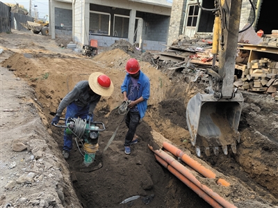 26日,记者在太平街施工现场看到,工人师傅正在对污水管线进行回填并夯实。“由于在小巷中施工,居民房屋都离得较近,确保安全成为首要任务,我们开挖一段回填一段,晚上将路面恢复。加之地下管网复杂,增加了施工难度。”东南柴市角综合示范片区项目的现场技术人员介绍。