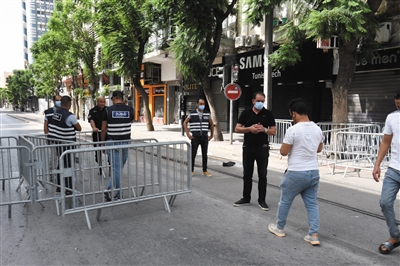 7月25日,突尼斯警察封锁首都突尼斯市中心路口并查验路人身份。