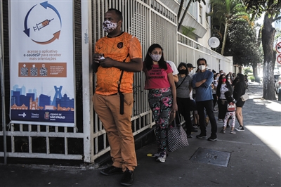 7月25日,市民在巴西圣保罗市一个疫苗接种点外排队。