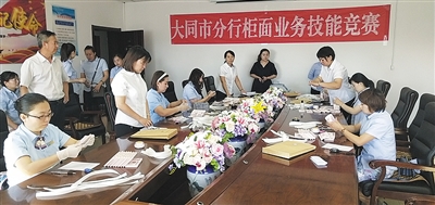 近日,邮储银行大同市分行通过开展柜面业务技能竞赛,进一步提高了柜员的综合素养和专业能力,不断加强柜员队伍建设,激发员工学技术、练本领、比技能的热情,形成“比、学、赶、超、帮”的工作氛围,着力打造一支技能硬、业务精、素质高、服务优的队伍,推动网点向“客户体验中心”和“营销服务中心”转型。