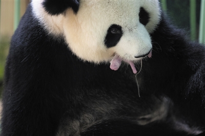 这是8月2日在法国中部圣艾尼昂市博瓦勒野生动物园拍摄的中国大熊猫“欢欢”顺利产下幼崽后的照片。