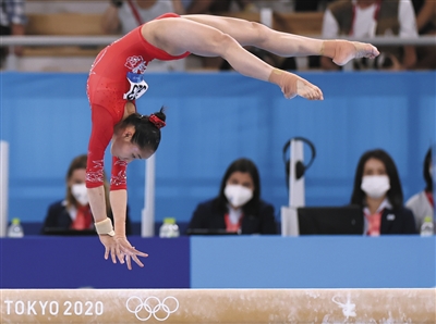 当日,在东京奥运会体操项目女子平衡木决赛中,中国选手管晨辰夺得冠军,唐茜靖获得亚军。