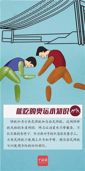摔跤分为古典式摔跤和自由式摔跤。这两种摔跤风格的本质相同:两名运动员在不带装备,不抓衣服的条件下,努力将对手的双肩压在垫子上。古典式摔跤只使用上半身和手臂,而自由式摔跤可以使用身体的任何部位。 据中新社