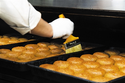 月饼放入烤箱大约七八分钟后还要拿出来,用筷子轻挑一个小洞,然后二次刷油,再放入烤箱。这里的负责人告诉记者,此道程序为“挑花”,是“马兵月饼”独有的工艺,不仅可以加快月饼的成熟速度,而且会使月饼口感更好。几分钟后,香味扑鼻的混糖月饼就“出炉”了。“马兵月饼”的混糖月饼主要有4个品种,白糖月饼、红糖月饼、玫瑰月饼和五仁混糖月饼。其中白糖月饼是“爆款”, 五仁混糖月饼是“独家”。这些没有华丽外表的月饼,在市场极其丰富的今天,何以做到让人们排队购买?“我们并不懂市场营销,就是凭消费者的口口相传才有了今天的成就。” “马兵月饼”的负责人给出这样的答案。