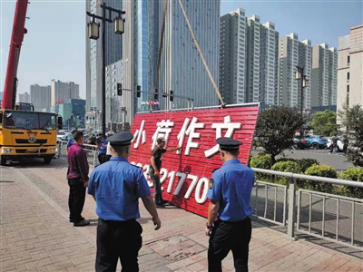 本报讯 (记者 杨昱郁) 为落实“双减”政策,连日来,平城区市容监察管理处抽调执法人员和相关部门组成联合整治组,对辖区内违规校外培训机构进行集中整治,20余家校外培训机构被责令关停,9块违规户外大型广告牌匾被依法拆除。