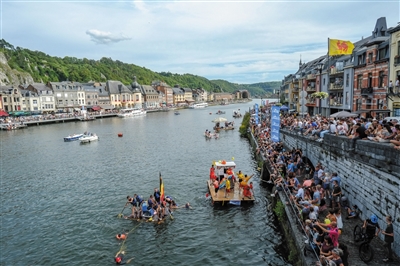 当日,一年一度的水上狂欢活动“浴缸划船节”在比利时迪南举行。“浴缸划船节”始于1982年。该活动要求参赛者制造的船上至少有一个浴缸,参赛者需完成一千米的水上巡游,最后根据设计创意及现场表演而非行进速度评选出优胜者。受新冠疫情影响,去年的“浴缸划船节”取消,今年的活动规模也有所缩减。