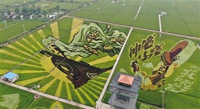 8月16日拍摄的稻田画《神笔马亮》,这里也是电影《我和我的家乡》取景地(无人机照片)。