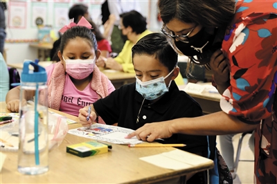 当日,美国洛杉矶联合学区迎来秋季入学第一天,成千上万名学生返校上课。学区要求所有教师以及学校工作人员都注射新冠疫苗,在校学生与教职员都要配戴口罩,经常洗手并保持社交距离。