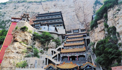 午饭后稍作休整,我们又向前山进发。十几年前我来绵山游玩,那时候的介公岭上还没有缆车,为了让孩子们的旅行更丰富,我们排队坐缆车到达了介公岭,拜谒了介公墓。之后,大家来到大罗宫游览区,当地人俗称“中岩”。“三清上,曰大罗”。道家认为天有三十六重,三十六重之上为大罗天,因此这座宫殿为大罗宫,意为最高的仙宫。大罗宫依山而建,层楼杰阁,画栋雕梁,金碧辉煌。整个建筑群面积为三万多平方米,共十三层组成,总高110米,游客称赞“可以与布达拉宫相媲美”,可谓天下道家第一宫观。大罗宫始建年代不详,据传在春秋时介子推来绵山隐居,就有道家人物活动的遗迹,东汉时已有部分殿庙初具规模。唐开元十一年(723),玄宗皇帝南出雀鼠谷时,专程驾幸绵山缅怀前朝圣祖功德,感戴绵山诸神护佑李唐王朝的恩典,降旨敕修大罗宫诸殿。以后宋代元佑年间、明万历年间、清代康乾年间官方与民间屡加修葺。至1940年遭日军焚毁,1998年三佳公司在原址上重修,才成为今日胜状。 该区内不仅有大罗宫主殿的讲经坛、混元殿、群仙殿,还有灵霄殿、三清殿、财神殿、救苦殿、元辰殿、三官殿、五老君殿、斗姆殿等诸殿。展厅内绵山唐、宋、元、明、清历代精品彩塑,被称为“山西的敦煌”。藏经阁是中国名胜区最大的藏书之处。宫内《道德经》木刻、石刻及英、日俄等译文,堪为《道德经》文化之大观。岩上有一天然石洞,夏日常有白云飘出,故称为“白云洞”。洞旁建一草庵,叫白云庵。庵内的《金刚经》石刻,为唐代遗留的稀世文物。一层一层登顶上去,直至最高层,看着下面的芸芸众生,真有一种飘飘若仙的感觉。只是美好的时光总是短暂的,结束了一天的游玩,我们踏上了归途。