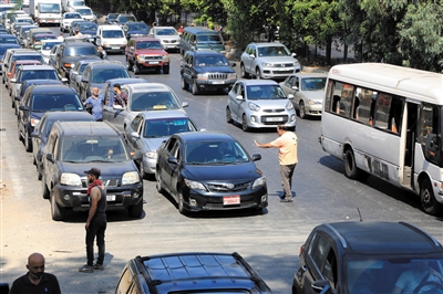 8月21日,车辆在黎巴嫩贝鲁特港附近的加油站排队加油。