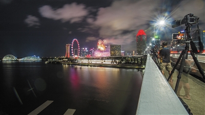 ◀ 8月21日,烟花在新加坡滨海湾上空绽放。
