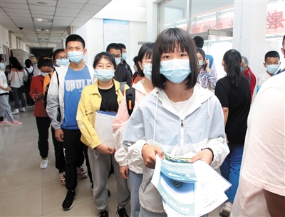图为北京师范大学大同附中高一新生报到现场。