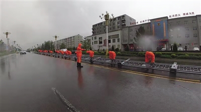 本报讯 (记者 龙中华 郑林) 8月23日,浑源县城突降暴雨,瞬时风力达到8级,道路中间的部分隔离栏被大风吹倒。消防人员冒雨出动,与交警、群众合力将隔离栏扶起。