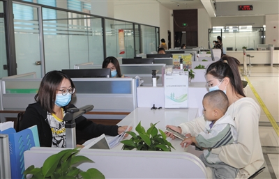 图为24日,居民在浑源县政务服务大厅内办理业务。