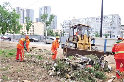 25日,平城区环卫处清运二公司和机扫一公司的环卫工们协同作业,对东花园里小区北侧周边偷倒混合垃圾进行突击清理。当日共清理垃圾60余吨,并对清理后的地面进行了平整。