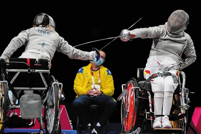 当日,在东京残奥会轮椅击剑女子佩剑个人赛B级决赛中,中国选手谭淑梅战胜乌克兰选手奥列娜·费多塔,获得金牌。
