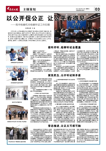 为推动检察听证工作常态化、规范化,全市检察机关将检察听证作为落实司法为民、化解社会矛盾,增强司法办案公开性和透明度的重要举措。