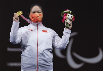 当日,在东京残奥会举重女子67公斤级决赛中,中国选手谭玉娇夺得冠军。