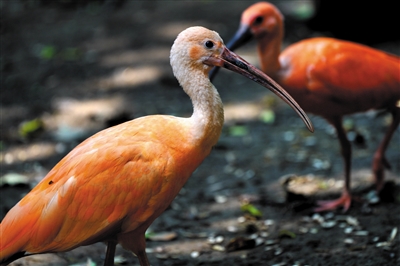 8月28日在上海动物园进入式鸟园展区拍摄的美洲红鹮。