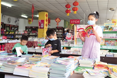为助力中小学生增加知识储备、拓展视野、提高综合素质,近期,市新华书店积极谋划,组织回儿童文学、素质教育、绘本系列、智力开发、中外文学经典、科普百科、益智手工等近万余种精品图书,以满足中小学生的购书需求。图为29日,孩子们在市新华书店阅读图书。 本报记者 于宏 摄