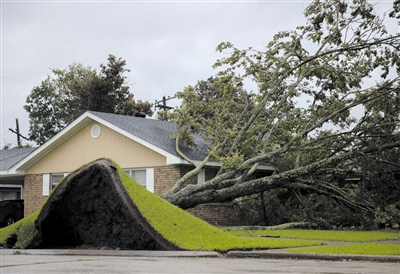 8月29日,在美国路易斯安那州摩根城,一棵大树被飓风吹倒。