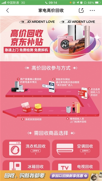 在群里抱怨此事时,群里的一个网友给王先生支了个招:现在各大家电平台都有回收旧家电的业务,他可以通过手机App下单家电回收,会有师傅上门将冰箱搬走,而且不用花搬运费,还能拿到一些补贴。