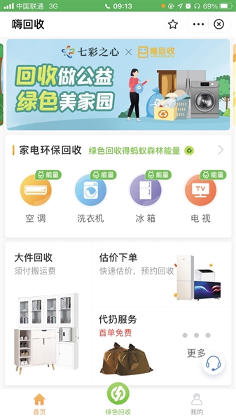 因为将闲置资源循环利用,支付宝App还在蚂蚁森林给了王先生一笔数额不小的绿色能量。王先生说,家里的旧冰箱别看没有双开门冰箱大但是很重,并不容易搬动,自己搬下去的话确实很费事,找工人搬的话也需要一些费用。App家电回收平台真的是个不错的选择,加上网络应用平台在家电回收方面的流程相对较为规范,这个大家伙总算是送走了,这样回收确实很方便,自己省时省事,也不会因随便丢弃污染环境。