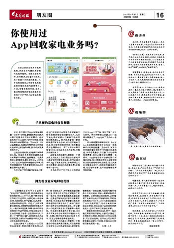 现在大家的生活水平越来越高,家庭生活电器的更新换代也越来越快。在购买新家电时,如何解决占位置的旧家电,成了困扰不少家庭的难题。几乎很难找到在儿时经常遇到的走街串巷回收家电的师傅了。不过,有需求就有市场,这不,通过网络预约家电回收服务已经成了不少手机App提供的服务内容。