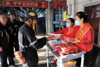 今年矿工节当天,云冈矿的女工联保员在井口服务站开展“感恩献爱心”慰问活动,向在一线辛勤工作的广大矿工送上祝福。夜班矿工出井后,联保员亲手为他们送上毛巾、鞋垫等日用品,并为他们提供免费的理发服务。