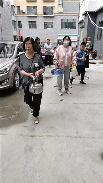 据张女士讲,2019年,他们小区进行了改造,当年工程没有完工,今年又接着进行。可在2019年,新的自来水管道已铺设到楼下,不知道啥原因至今没有对接。两年来只能继续使用旧管道,造成大量漏水,居民们因此花了不少冤枉钱。听说8月22日地下水管跑水严重,几位居民只好暂时关了供水阀门。张女士腿有病,原本上下楼就不便,如今每天还得抬水上7层,非常困难。