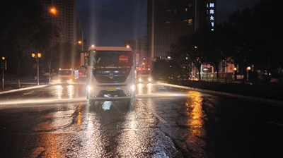 本报讯 (记者 杨昱郁) 为了避开交通高峰,连日来,平城区环卫服务中心改变清洗路面时间,选择在夜间进行大规模清洗,加快了清洗速度。