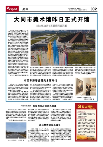 本报讯 (记者 李明璇) 9月1日,大同市美术馆正式开馆,我市再添一文化新地标。开馆系列展和“清凉古都 消夏大同”艺术作品展两大板块共6项展览同日开展,为市民奉上一场艺术盛宴。