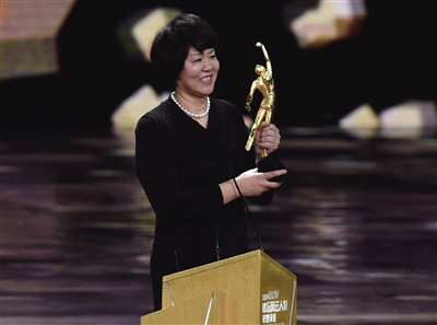 2015年2月1日,在北京举行的“2014CCTV体坛风云人物年度评选”颁奖典礼上,中国女排主教练郎平获得年度最佳教练奖(资料照片)。