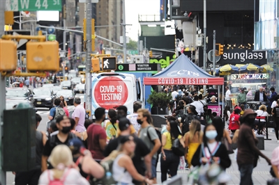 ▶ 这是8月31日拍摄的美国纽约时报广场上一处流动新冠检测点。