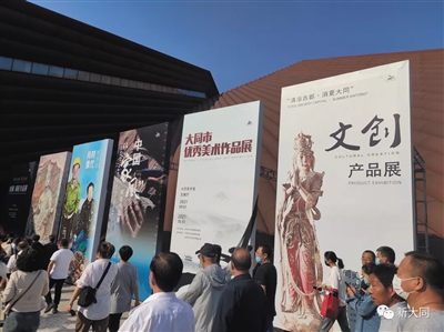开馆当日,同步开启的六大展事活动吸引着人们关注的目光。2号厅展出的时代肖像——忻东旺艺术作品展、3号厅展出的武大明“大同风情”油画作品展、1号厅展出的“中国家风”版画作品展、主展厅展出的大同市优秀美术作品展的主题艺术展各具风貌,让馆内异彩纷呈,观众流连忘返。在4、5、6号厅展出的“清凉古都 消夏大同”绘画摄影作品展,在文创空间展出的文创作品展,则集中展现了大同在转型发展、文旅融合、生态文明、乡村振兴等方面的新风貌。